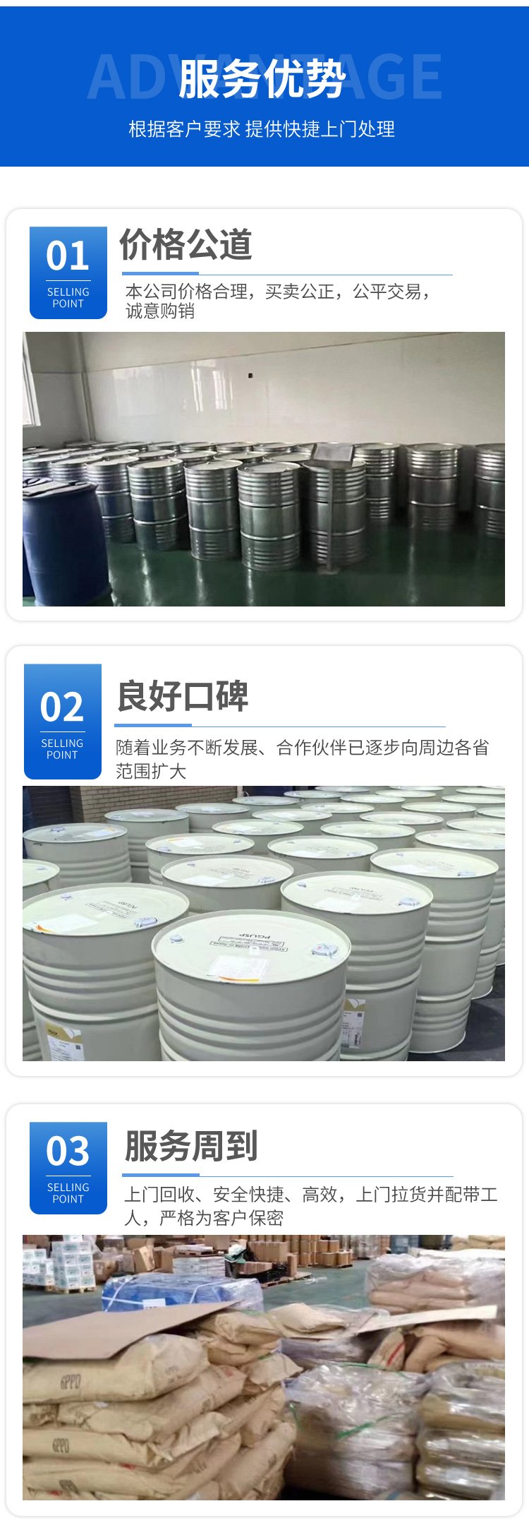 回收油漆、回收溶剂、回收橡胶、回收塑料助剂、回收橡胶助剂、回收食品添加剂、回收库存化工原料、经销日化原料、经销佐敦油漆