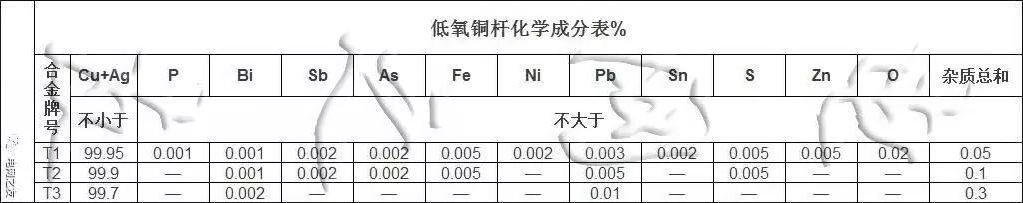 ▍低氧铜杆简介-低氧铜杆化学成分表: