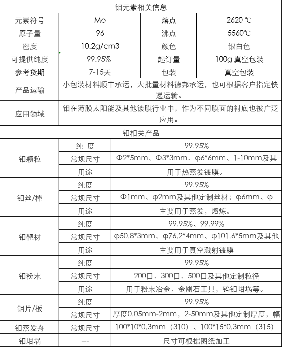高纯钼靶材 99.95Mo高纯钼溅射靶材 货到付款 科研专用bjkrxc