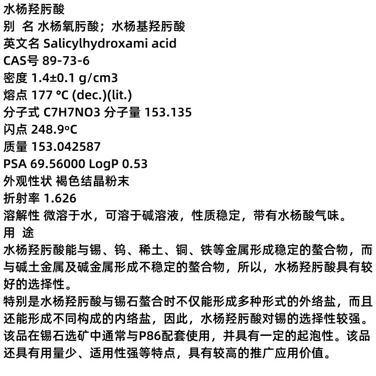 水杨羟肟酸 89-73-6 锡石选矿 有色金属捕收剂 支持分装