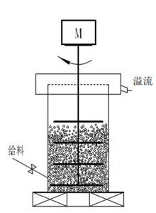 结构与工作原理: 本机由异形筒体(圆形、四边形、六面体或八面体等),组合式搅拌器,传动装置和机架等组成,筒体内充满一定的磨矿介质(锆珠、瓷珠或玻璃珠),传动机构带动搅拌轴以中等速度旋转,通过优化的搅拌器结构强制带动介质球作旋转,矿浆经加料口送入磨腔内,经介质球之间强烈的研磨,剪切和冲击而磨细,成品浆由上部筛网过筛溢出,排入贮料桶。