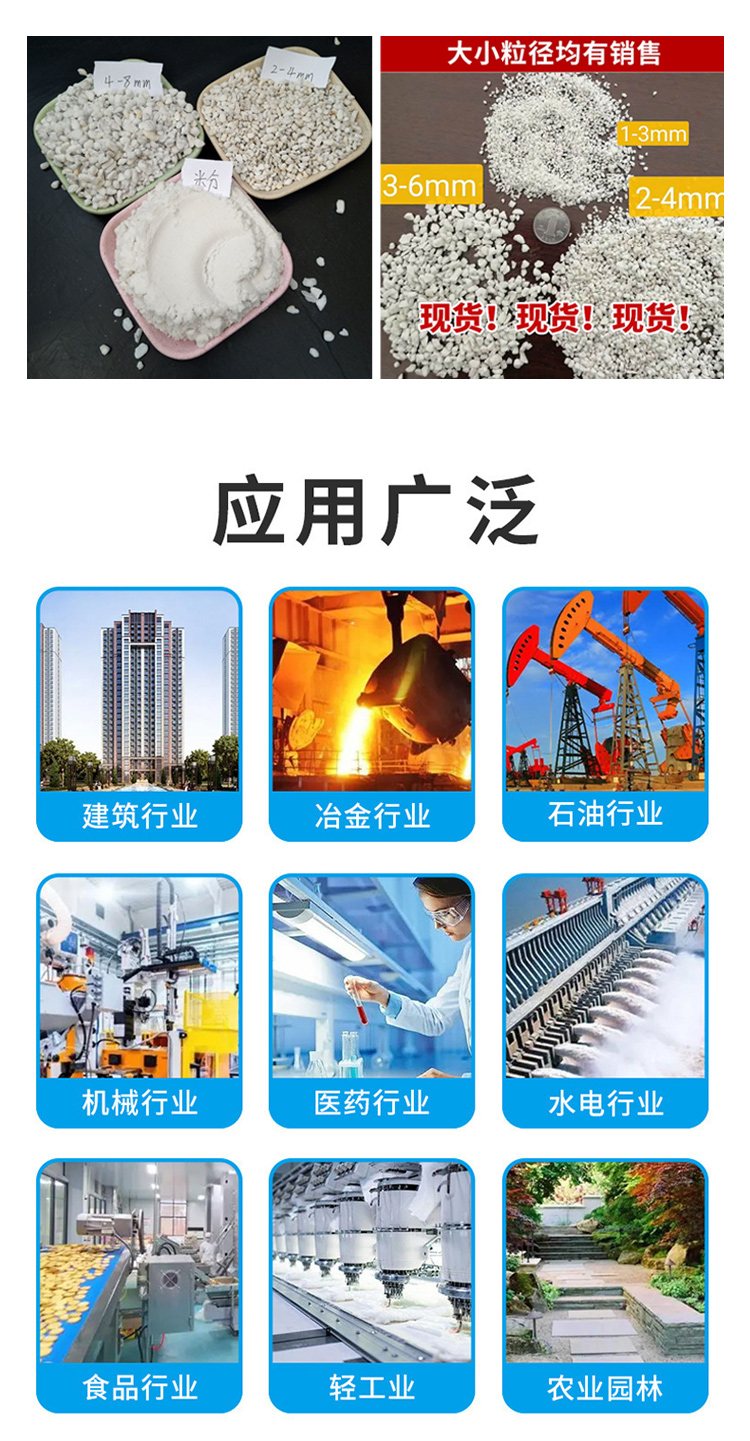复合板、隔墙板、吸音板、保温板、洗手粉、助滤剂、珠光砂、防火板、液氮罐、珍珠岩、油漆涂料、抹灰石膏、填充骨料、玻化微珠、珍珠颗粒、屋面保温、污水净化、低温设备、工业墙体、保温材料、低温冷库、内外墙保温、植物油制作、耐火砖砂浆、过滤膨胀微粉