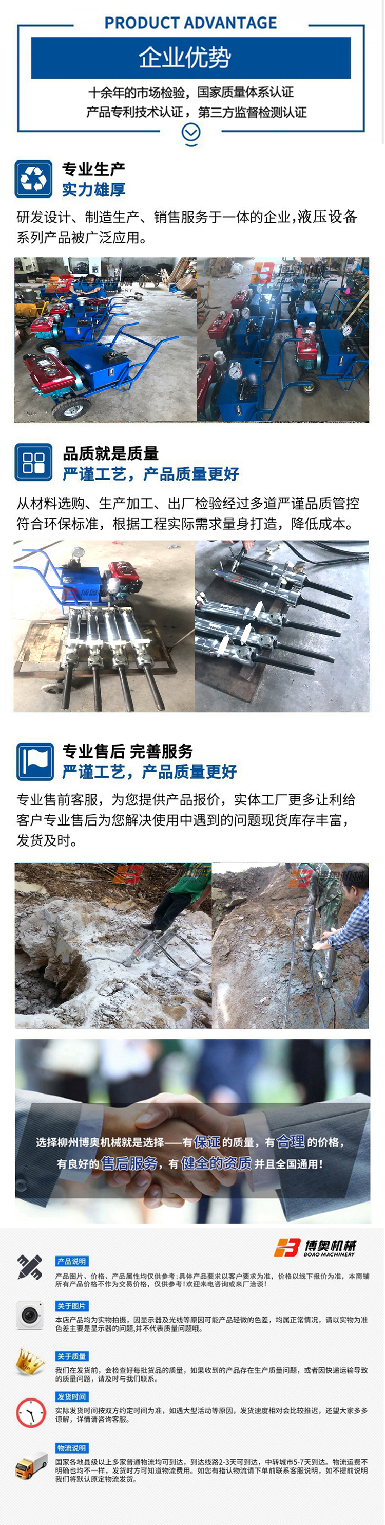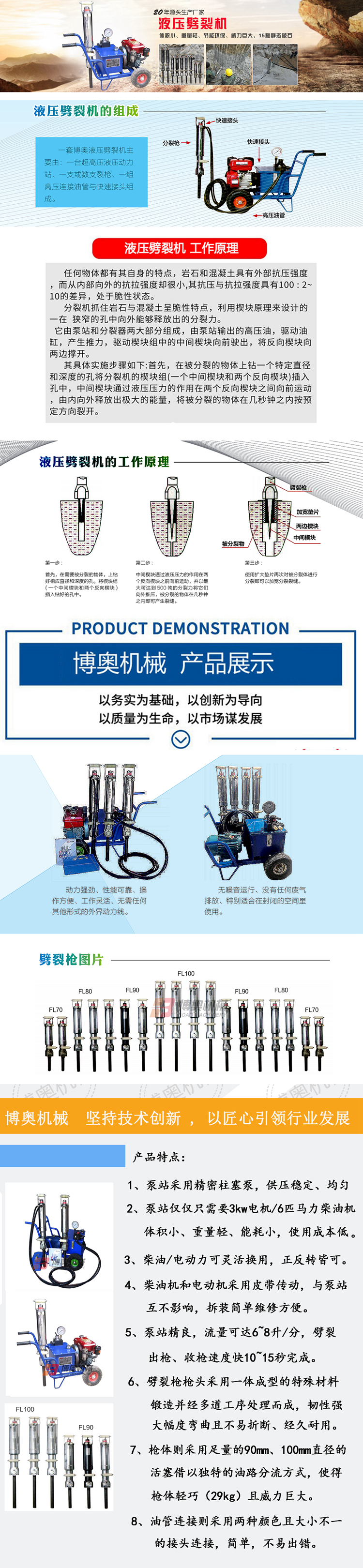 液压膨胀岩石劈裂机 工作时无振动 周围环境不受影响 博奥机械CI00