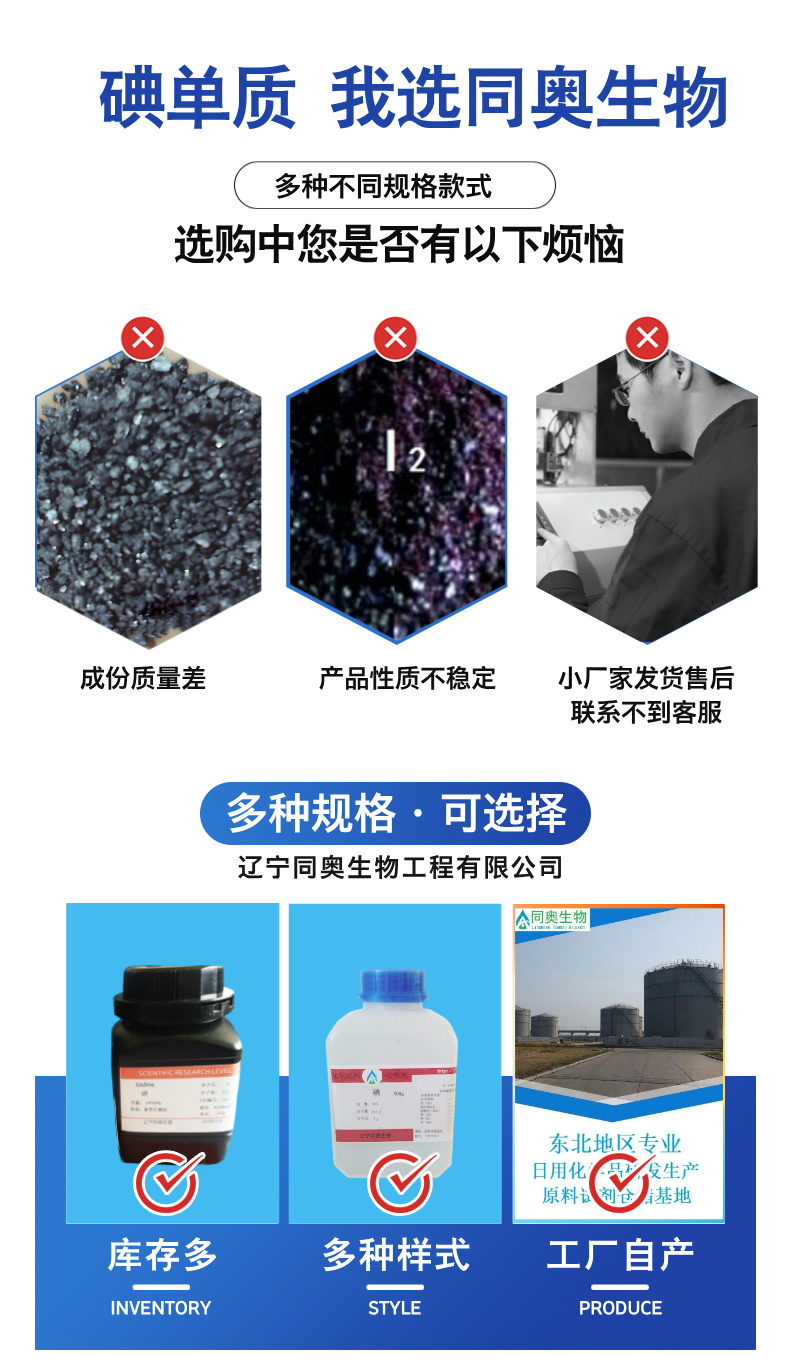 同奥生物99%纯度碘单质CAS7553-56-2医学造影 放射用料品类齐全
