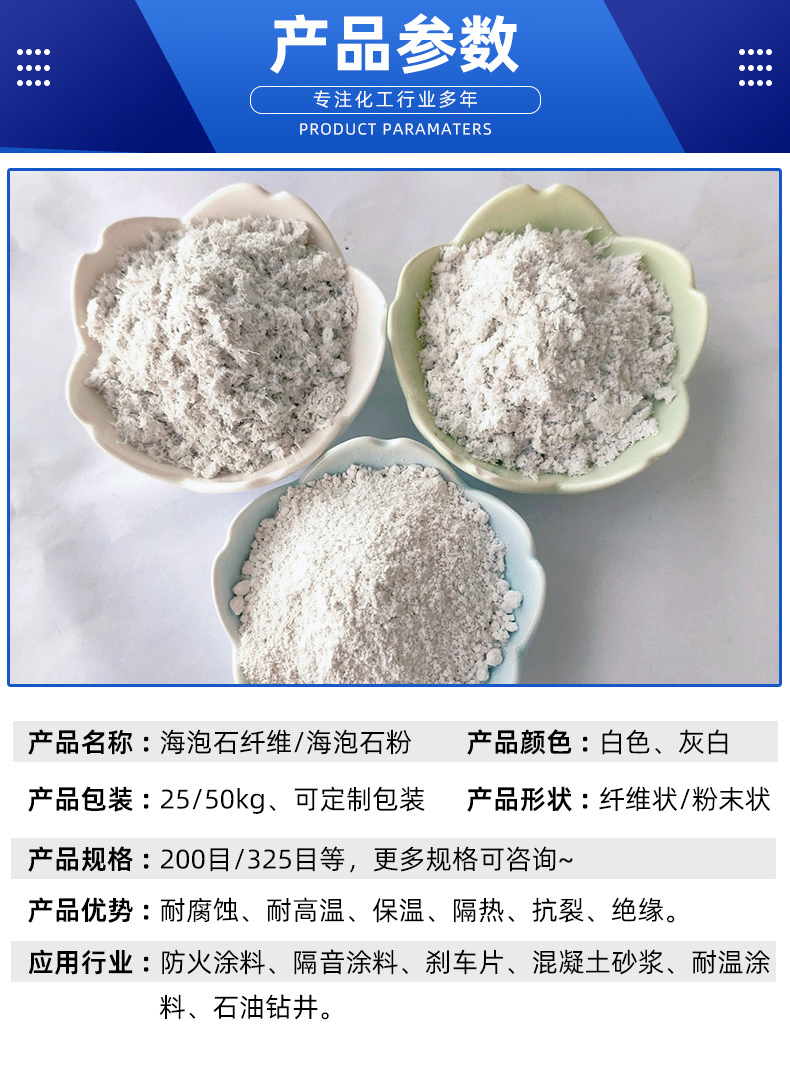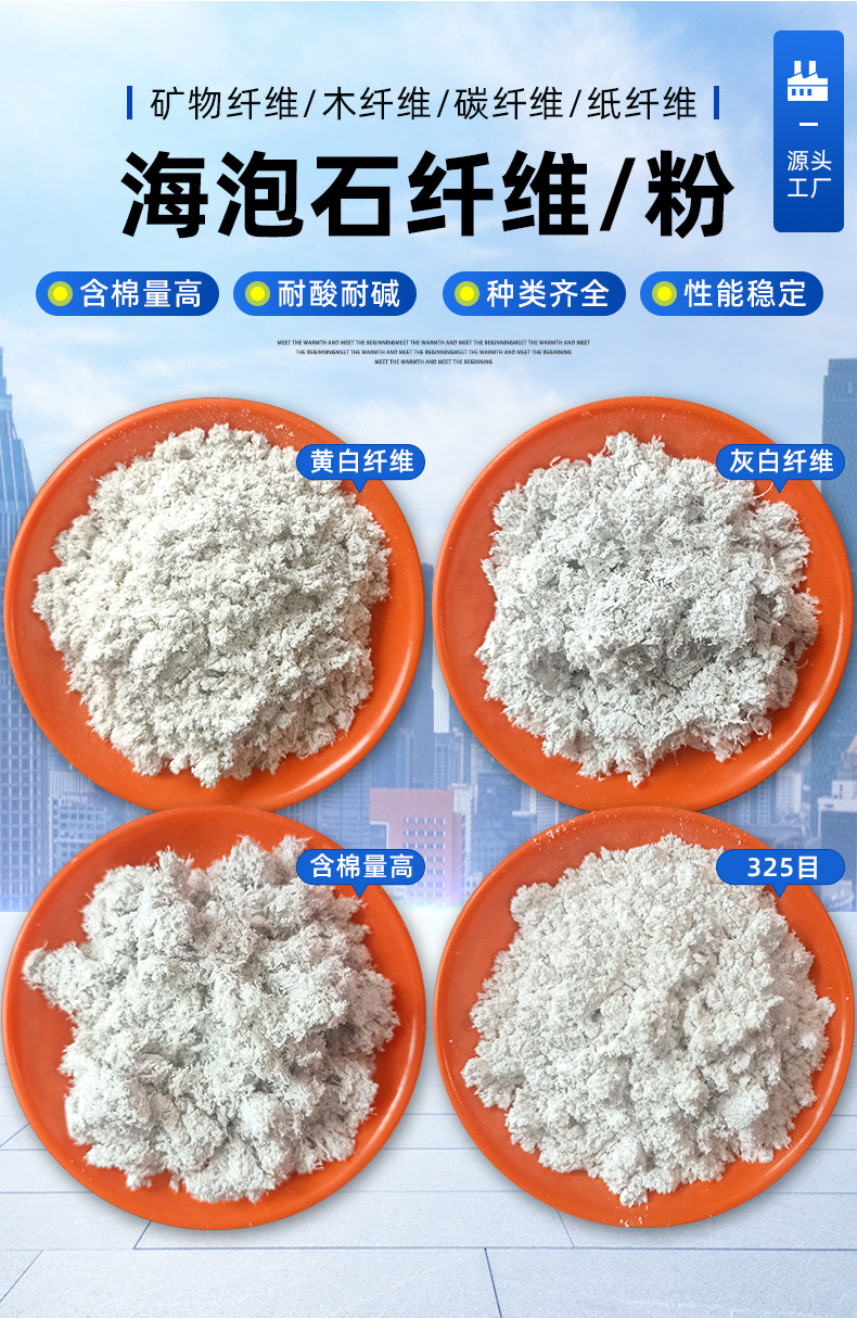 建筑保温隔热用海泡石纤维 防火隔音涂料石棉绒 海泡石粉