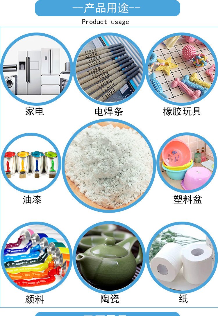 云母广泛应用于电焊条、涂料、油漆、塑料、油毡造纸、油田钻井、装饰化妆等行业。