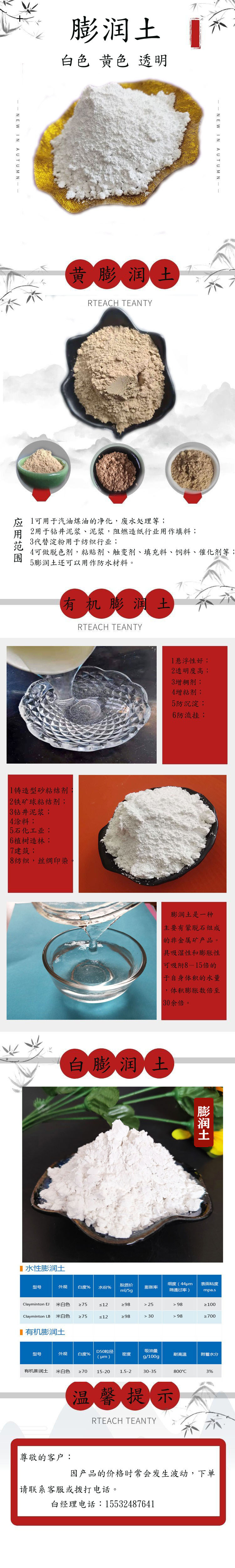供应改性蒙脱土铸造钻井工程橡胶用钠基膨润土增稠剂吸附性强