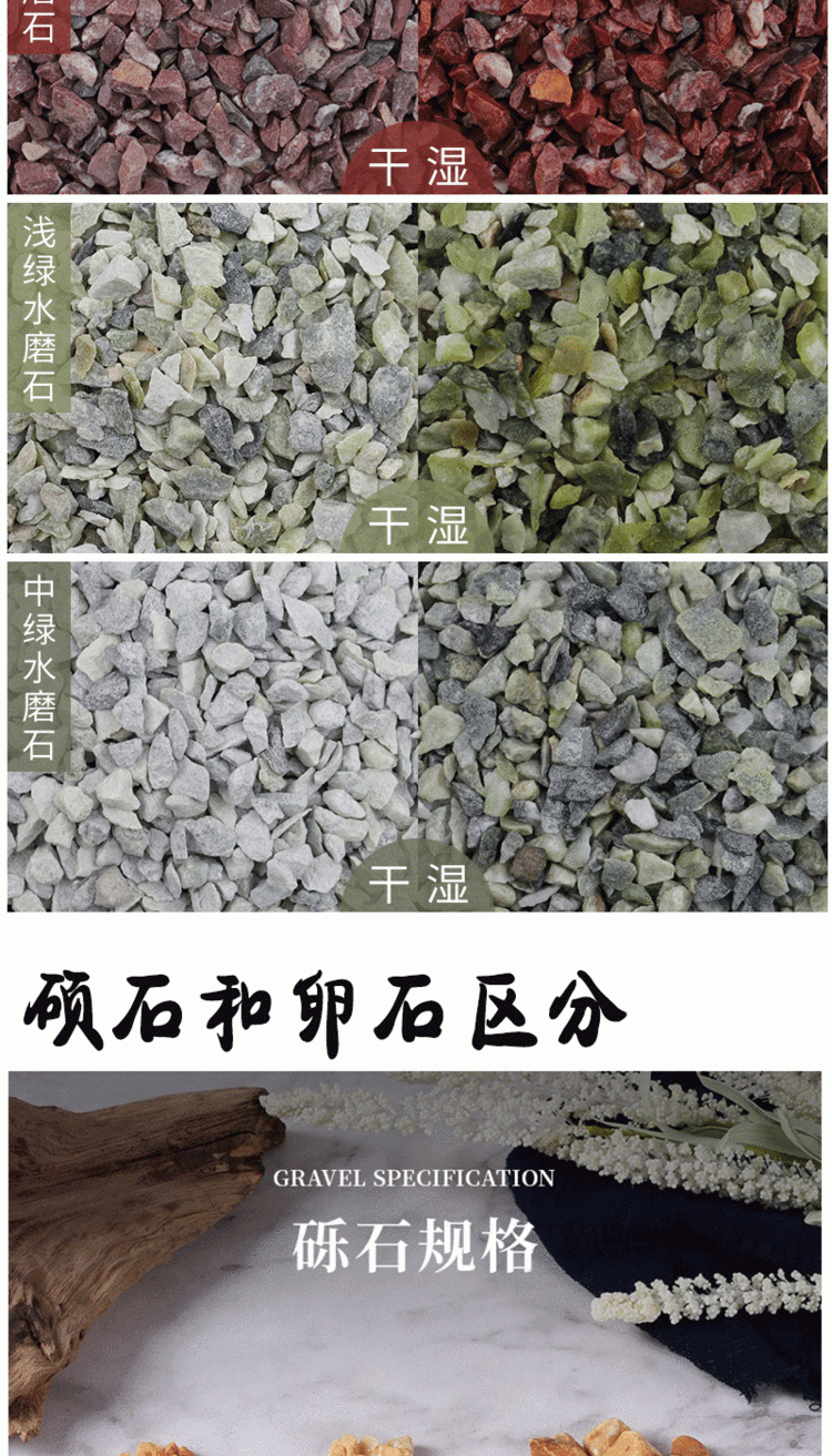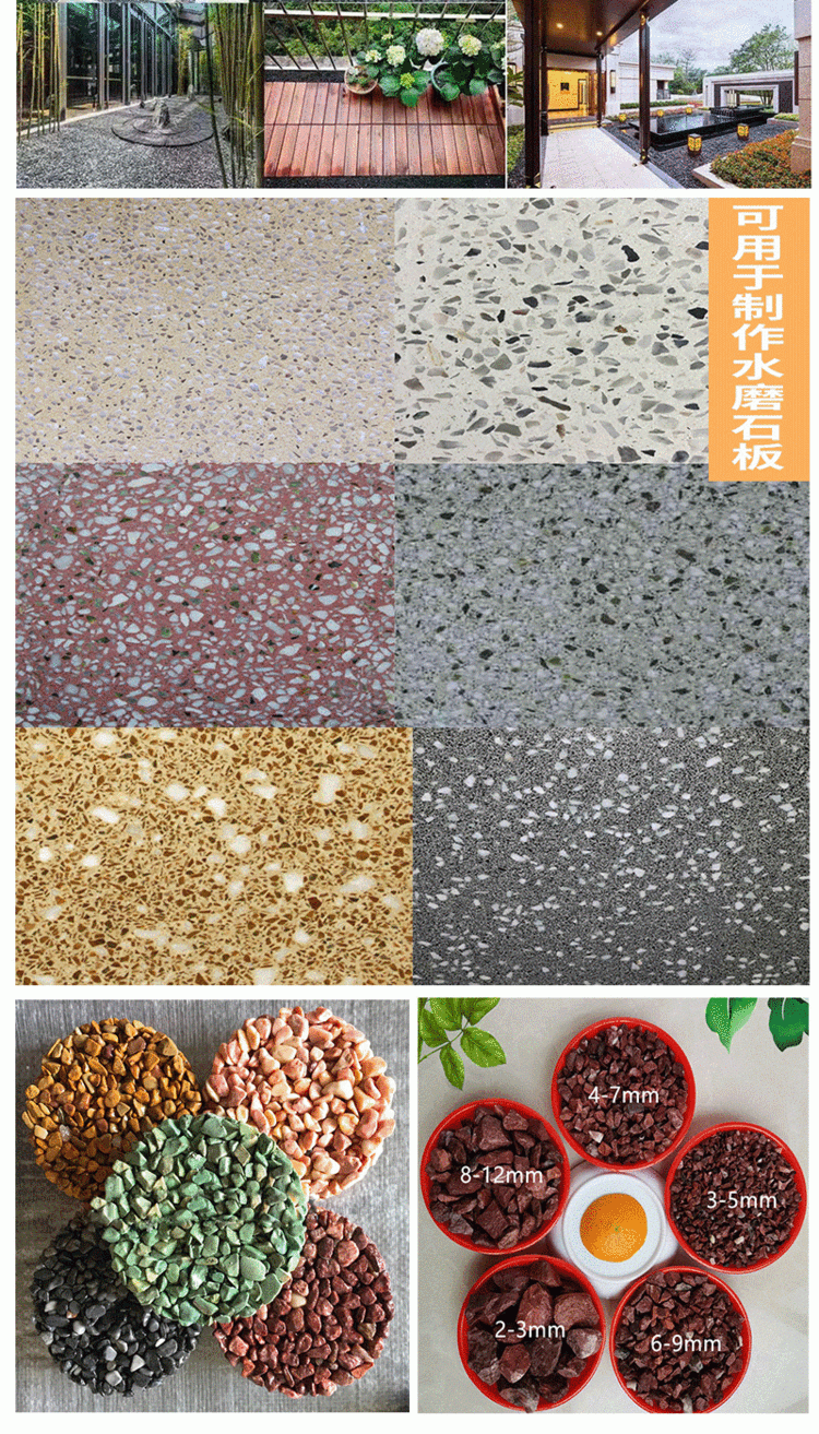 水磨石、火山石、鹅卵石、陶瓷颗粒、彩砂、陶瓷球、石英砂、白沙子、金刚砂地坪料、蛭石