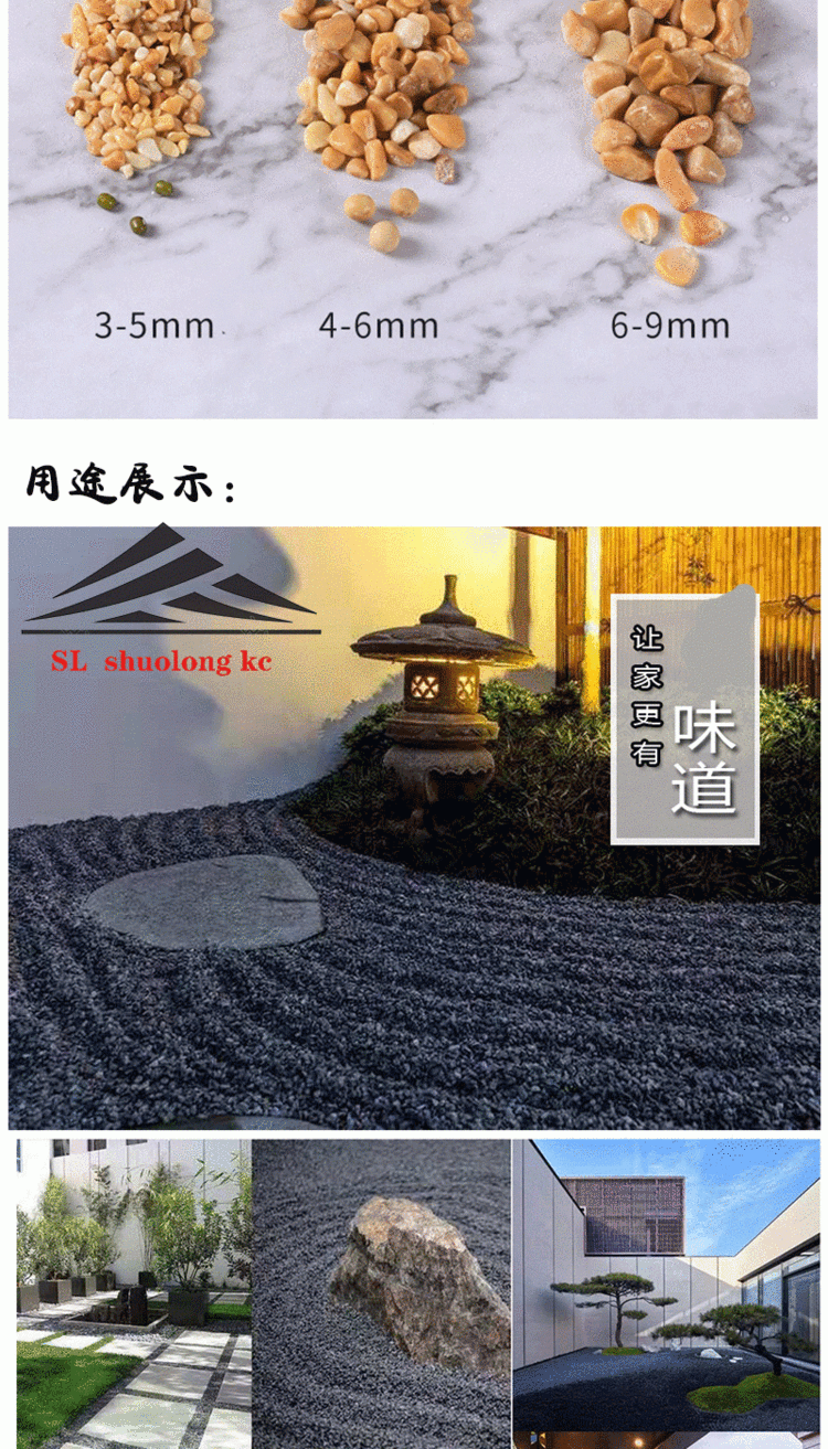 铺路造景用 枯山水磨石 瓜子片石子黑色砾石