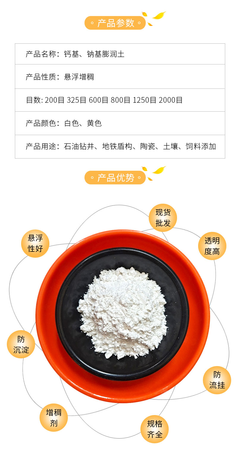 白色钙基膨润土 黄色钠基膨润土粉 陶瓷用稳定性好悬浮性强