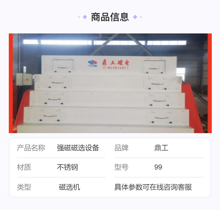 鼎工强磁磁选机不锈钢磁选设备型号规格量身定制 运行稳定 磁场强