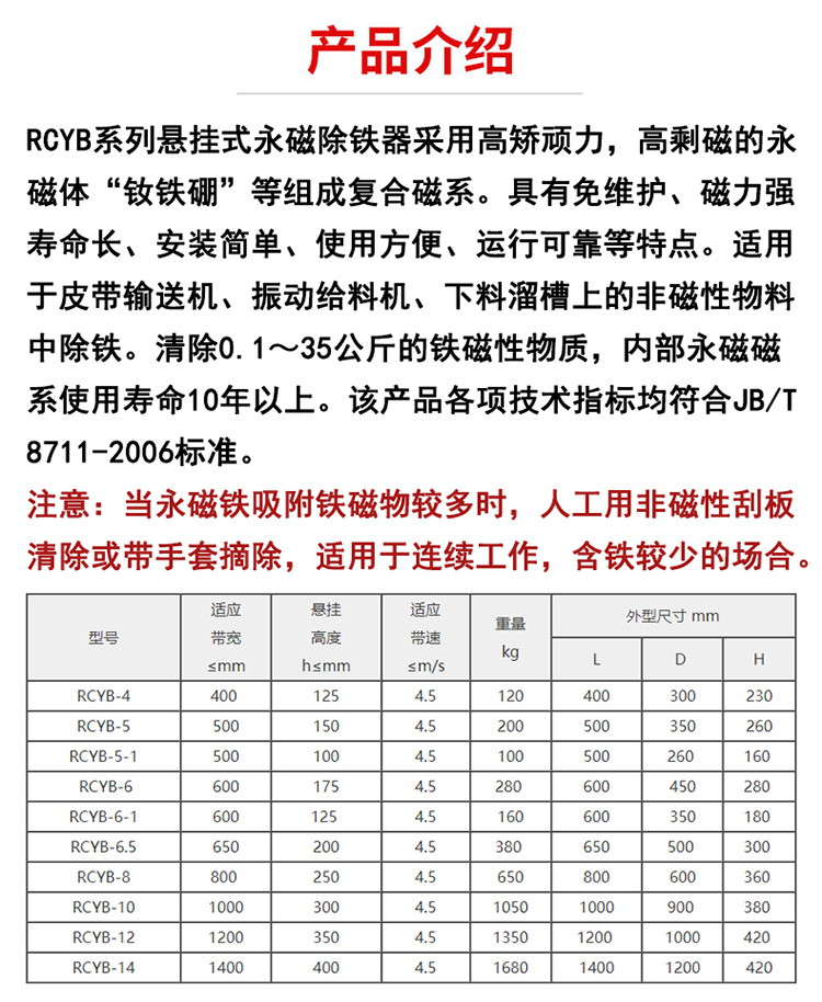 强磁除铁机永磁自卸除铁器 管道式悬挂式吸铁机磁选机