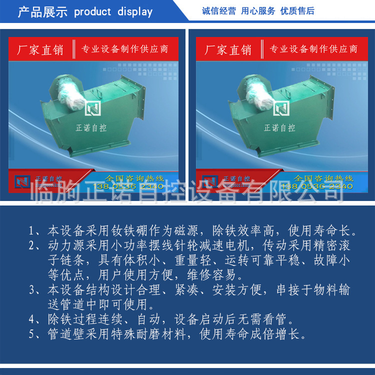 生产厂家管道式自动除铁器 干式永磁磁选机 强磁去除铁杂质