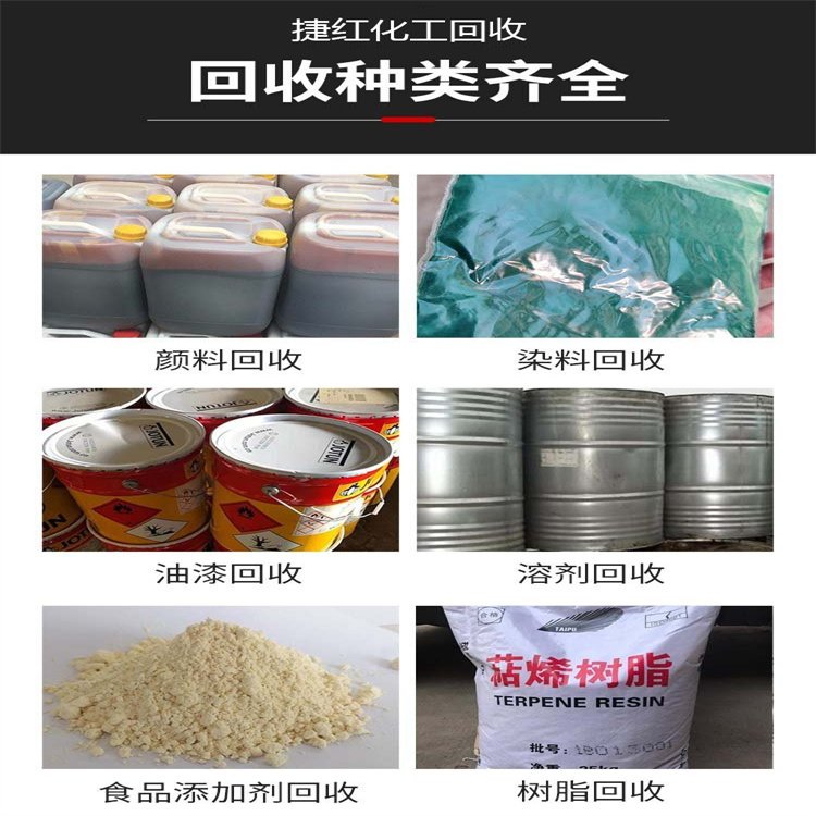 回收溶剂、回收油漆、回收色浆、回收染料、回收日化原料、回收油墨、回收颜料、回收橡胶助剂、回收塑料原料、回收食品添加剂、回收化工原料
