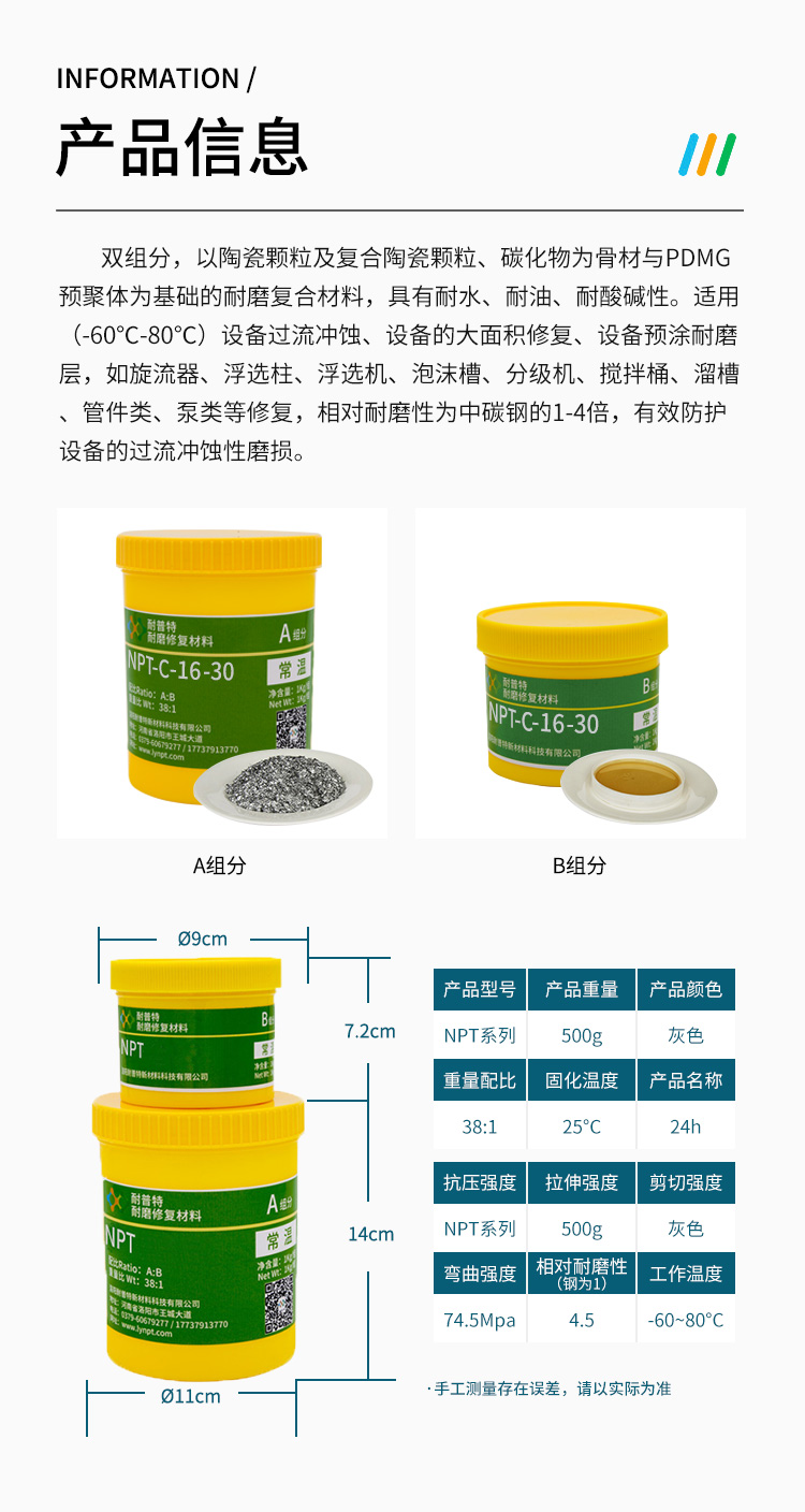 金属表面耐磨涂层 磨损修复涂料 耐酸耐碱防腐涂料NPT-C-16-30
