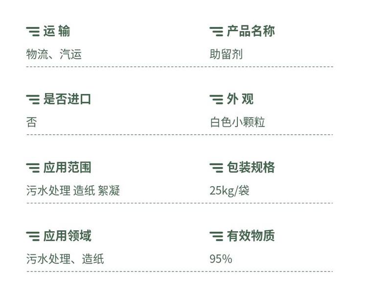 环保助留剂 聚丙烯酰胺 物流、汽运 白色小颗粒 25kg/袋