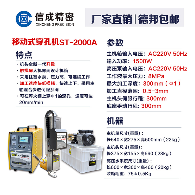 sfx 移动式电火花穿孔机ST-2000A 高速打孔机 钻孔机 速度快低损耗