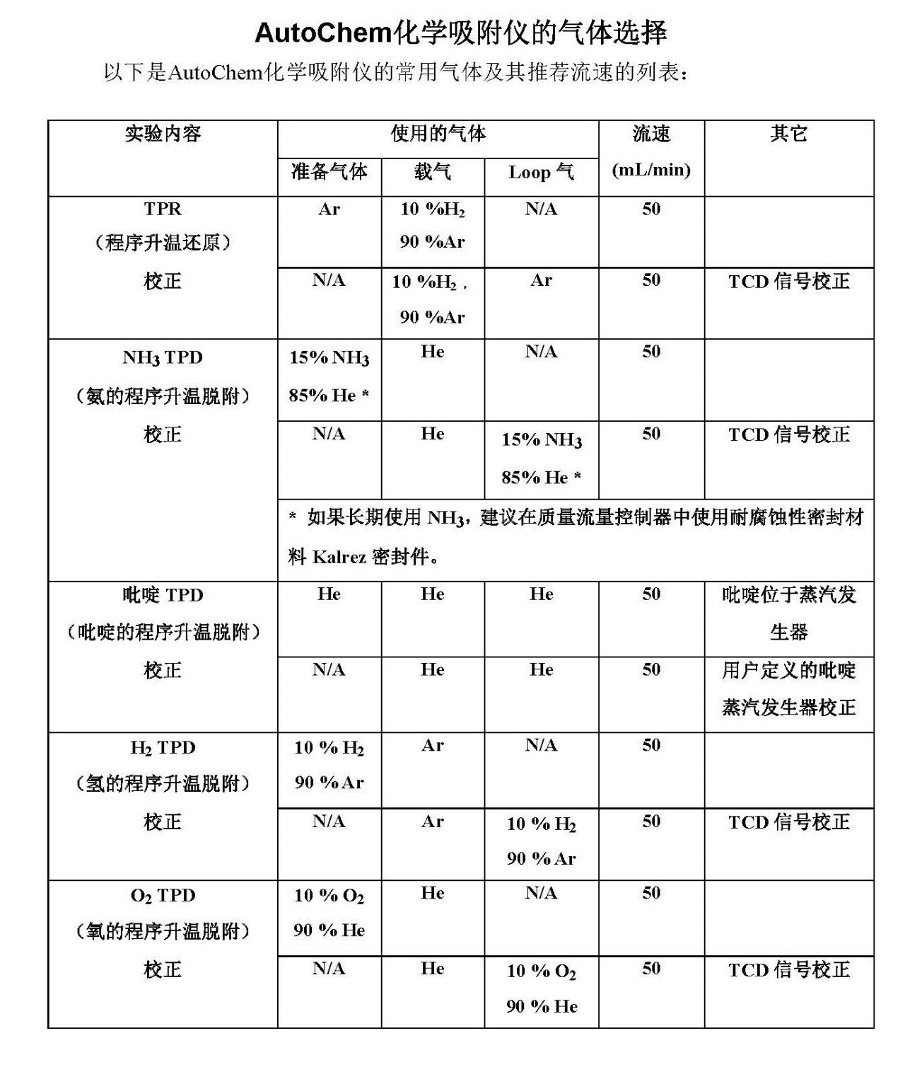 AutoChem化学吸附仪的气体选择