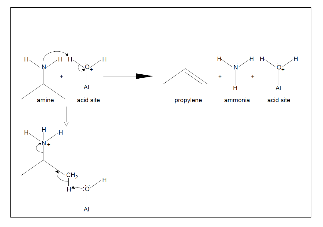 图1.胺与酸位点反应,通过类似霍夫曼消除反应分解成丙烯和氨