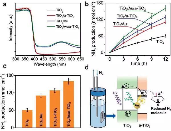 近日,美国麦克仪器公司用户天津大学巩金龙教授(通讯作者)领导的科研团队在Angew. Chem. Int. Ed.上发表了题为“Promoted Fixation of Molecular Nitrogen with Surface Oxygen Vacancies on Plasmon-Enhanced TiO2 Photoelectrodes”的研究论文。在这篇文章中,研究者首次发现了利用无定形TiO2中Ovac来提升光固氮性能的新方法。通过原子层沉积的表面自限制生长机制,在等离子体增强金红石TiO2/Au纳米棒表面均匀包覆含有Ovac的无定形TiO2层。这层无定形TiO2薄膜中的Ovac可以促进N2吸附和活化,促进了紫外光驱动TiO2以及可见光驱动金表面等离子体产生的激发电子将氮气还原为氨。这一发现为在常规条件下(即室温常压)下进行光催化固氮研究提供了一种新的方法。