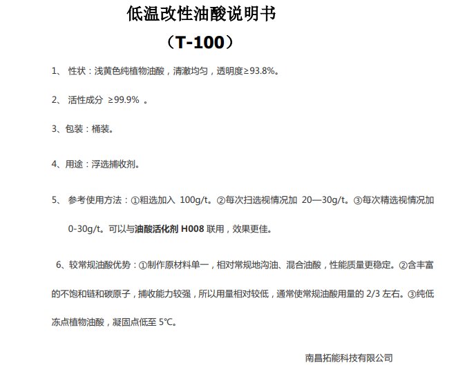 油酸731 改性萤石专用捕收剂 低温强效T-198 T-100 T-101