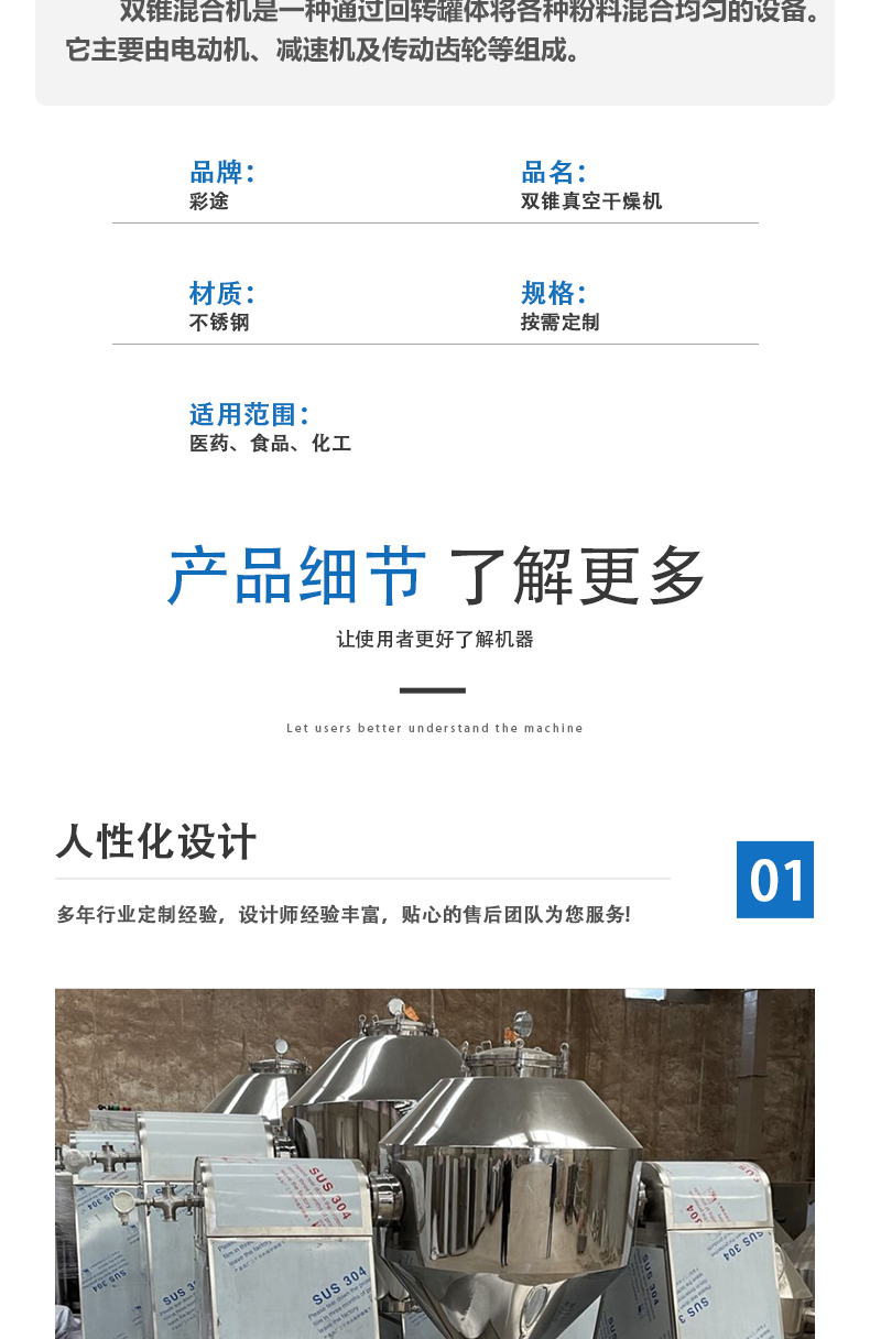 彩途机械 双锥回转真空干燥机 粉末颗粒 色母粒真空烘干设备
