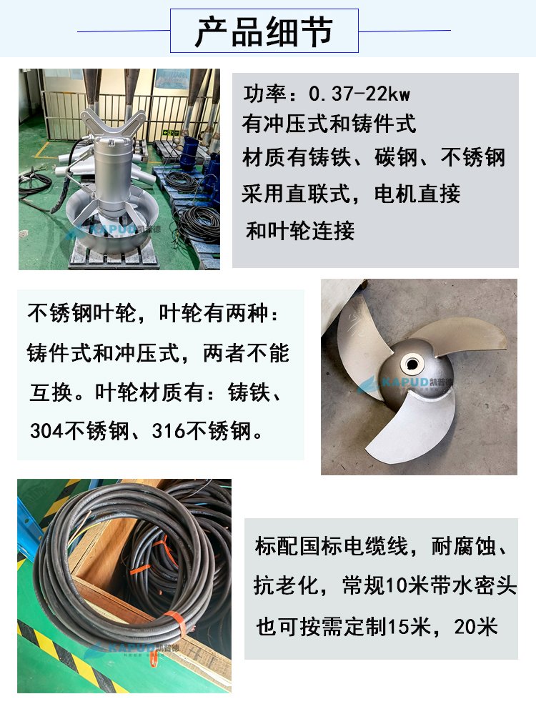 潜水推流器QJB7.5不锈钢防缠绕混合型搅拌机带安装支架凯普德定制