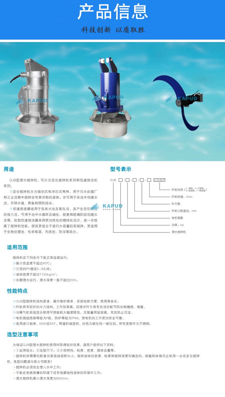 QJB潜水搅拌机、潜水回流泵、潜水爆气机、排污泵、立式搅拌机、QJB潜水推流器