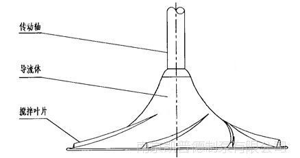 其叶轮结构由导流体、搅拌叶片及传动轴等组成。