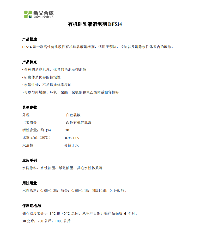 N新义合成 改性 有机硅乳液 消泡剂 DF514 非离子水洗涂料水性油墨