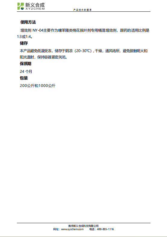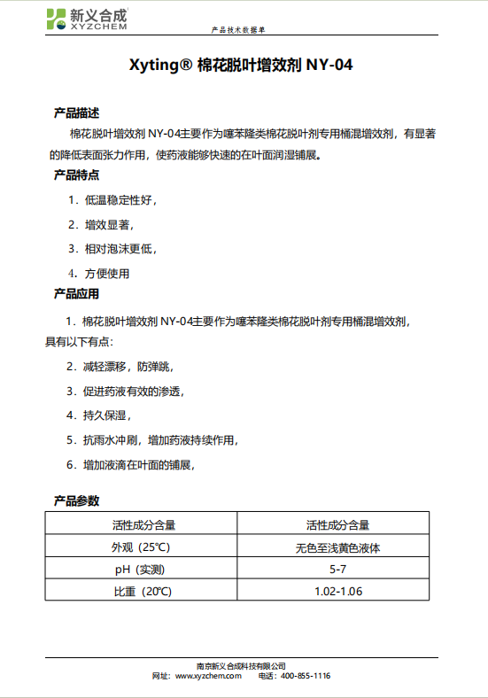 N 新义合成 棉花脱叶增效剂 NY-04 稳定性好 烷基乙基磺酸盐 脱叶伴侣