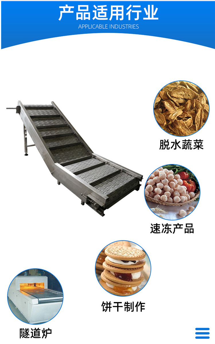 输送线、输送带、提升机、平顶链、加厚链板、重型链板、链板输送机、链板给料机、链板提升机、打包机链板、破机链板、窑炉链板、窑炉网带、退火炉网带、马蹄链、转弯机、烘干机、不锈钢网带、退火炉网带、垃圾输送链板、网带输送机、网带提升机、不锈钢网链、输送网链、输送链板