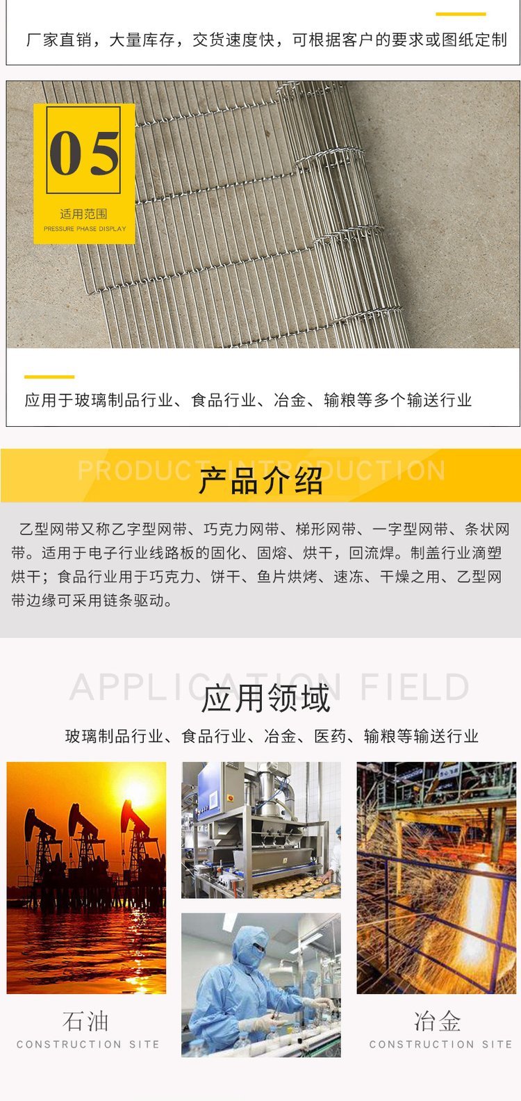 3、巧克力涂层用乙型网,肉食速冻,烘烤乙型网,等.
