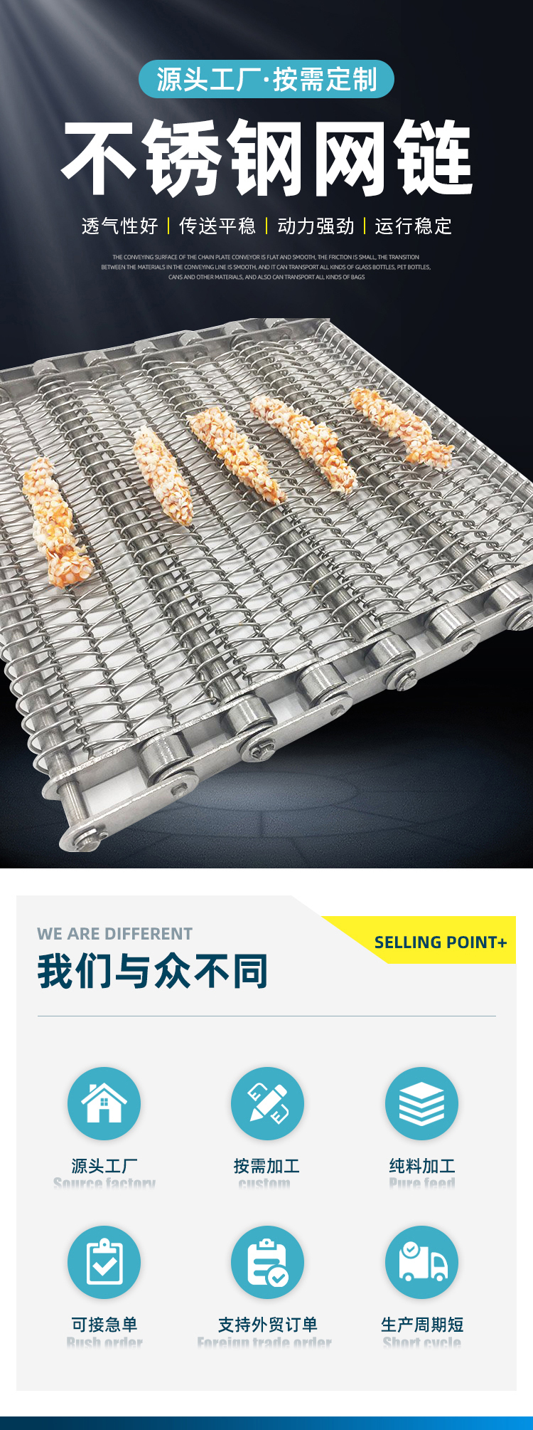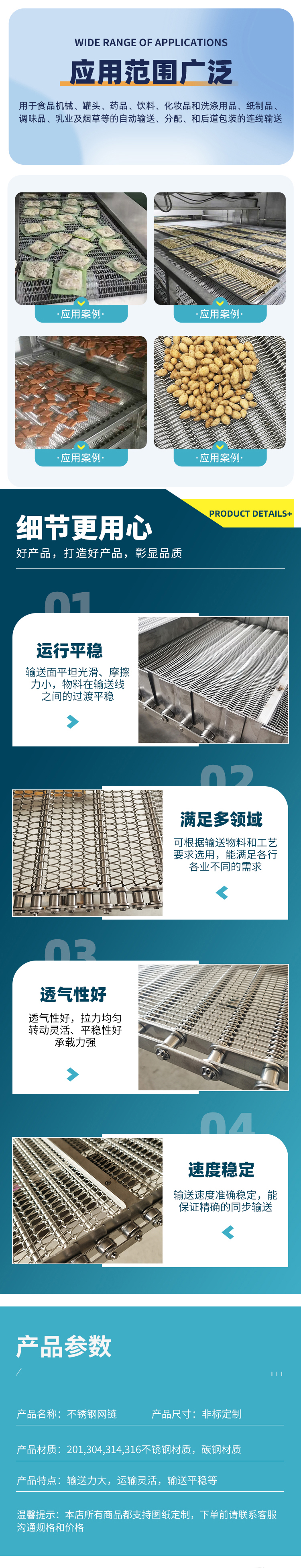 网带、不锈钢网链、乙型网带、链条网带、高温网带、链杆式网带、眼镜网带、长城网带、链板、冲孔链板、清洗机链板、杀菌机链板、不锈钢链板、网带输送机、不锈钢链板输送机、网链提升机、板链转弯机、不锈钢链条、双节距链条、非标链条、刮板机链条、人字形网带、隧道炉网带、烘干机网带、链条式网带