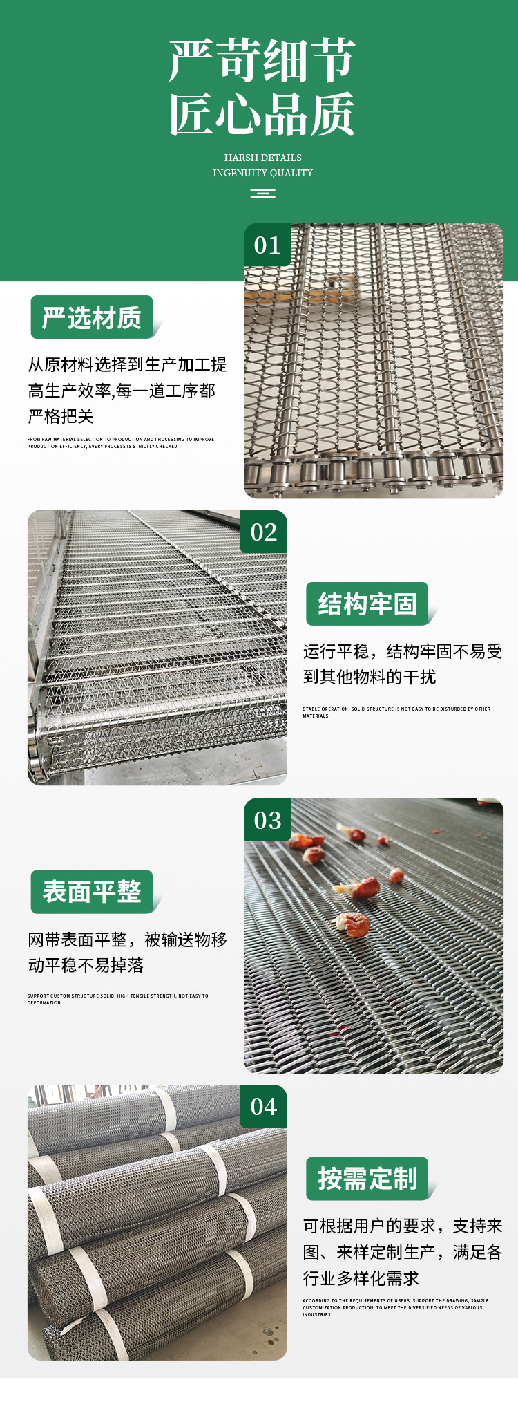 网带、不锈钢网链、乙型网带、链条网带、高温网带、链杆式网带、眼镜网带、长城网带、链板、冲孔链板、清洗机链板、杀菌机链板、不锈钢链板、网带输送机、不锈钢链板输送机、网链提升机、板链转弯机、不锈钢链条、双节距链条、非标链条、刮板机链条、人字形网带、隧道炉网带、烘干机网带、链条式网带