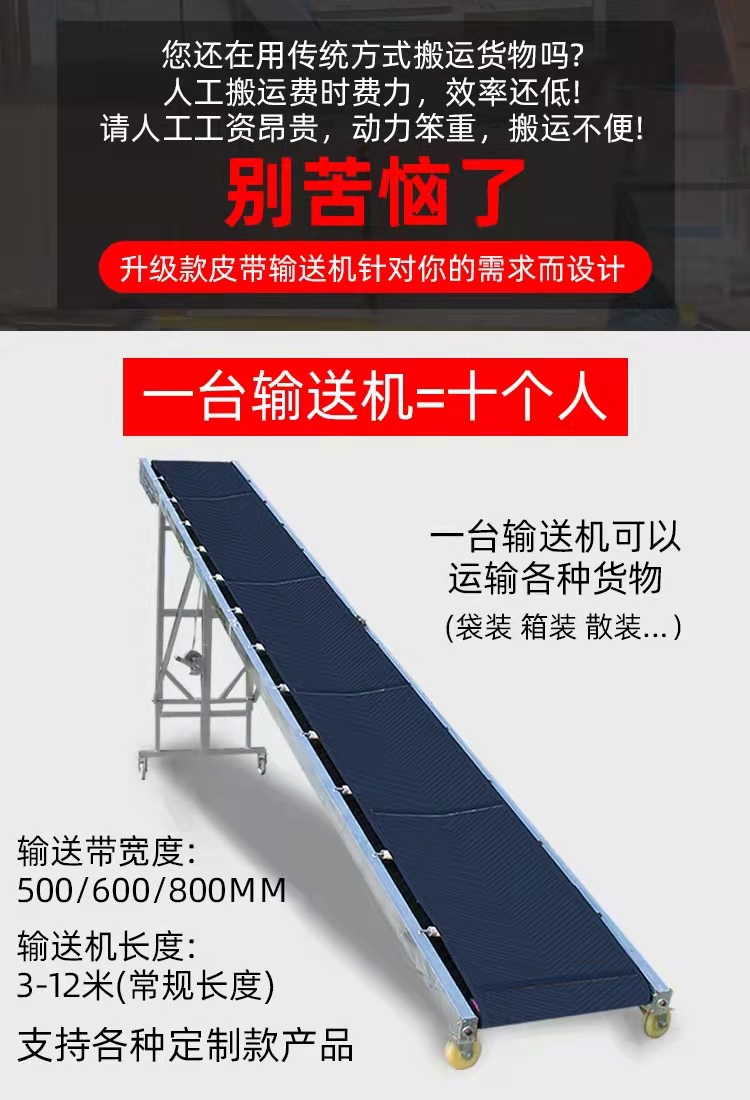 定制橡胶皮带输送机移动式升降卸货上料机小型pvc输送带