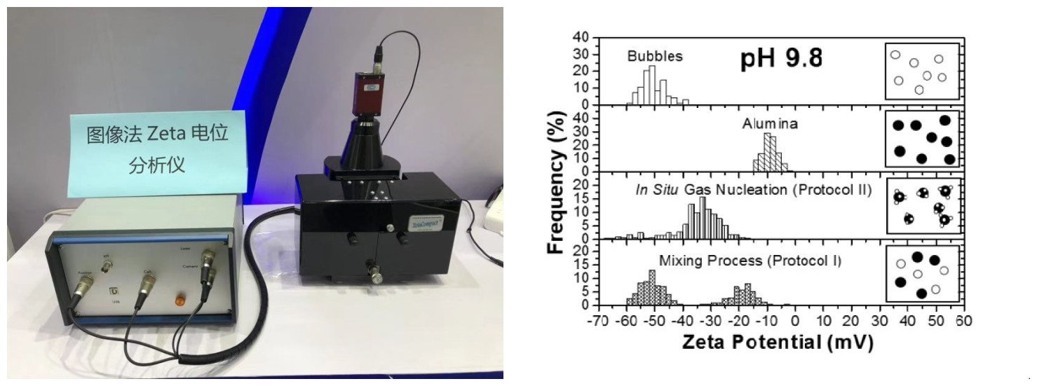 在水处理领域中,通常需要进行气浮曝气环节,以通过气泡将水中的杂质携带至水面以便清理,从而实现净化污水的目的。例如在含油废水的净化领域中,需要对废水进行气浮曝气来实现废水的净化。通常,含油废水的来源很广,其中工业上主要有石油工业的炼厂含油废 水、石油勘探开发采油废水、冶金、钢铁厂、冷轧厂废水、油轮压舱水、机电和机械加工的乳化油废水、以及餐饮业、食品加工业等。研究表明,气泡在水中产生切割电离作用,最终被正负离子包围,而微纳米气泡对微小油滴产生强烈的吸附作用。通过微纳米气泡的吸附作用,无论较大粒径的油团还是小分子团的油滴,都可以被吸附聚合并迅速上升到水面,再通过可靠的溢流收集手段进行收集,得到有微小含水量的油品。而被油污染的水域则彻底消除了油污染。而能用于气泡zeta电位分析的是ZetaCompact图像法(视频追踪)zeta电位分析仪,它能测出每一个颗粒或气泡的Zeta电位并给出真正的zeta电位分布图,必将推动中国的微纳米气泡的机制研究。