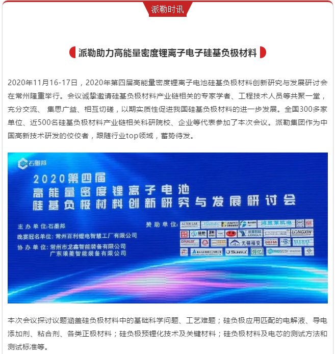 派勒集团助力锂离子电子硅基负极材料&国际碳材料研讨会