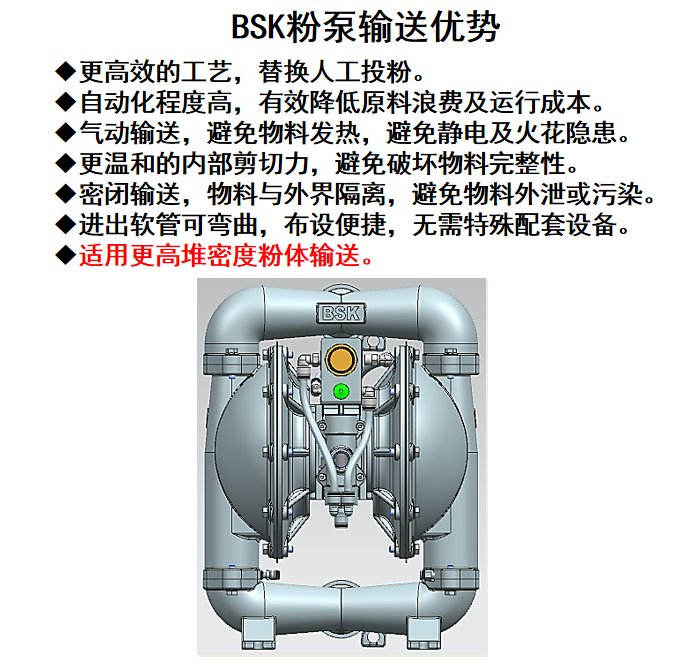 美国进口BSK气动隔膜化工专用粉末输送泵