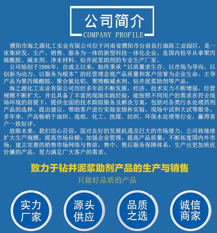聚丙烯酰胺在石油工业的应用涉及面很广,包括给水、排水及工艺过程水。在石油钻井泥浆处理中,油田勘探开发、地质、水利、煤炭的勘探用聚丙烯酰胺作钻井泥浆、添加剂,可以提高钻速和进展,并有一定防塌作用,对加快油田开发及地质、煤炭的勘探有明显的效果,已普遍推广使用。在一定浓度下和温度下的粘度,其分子量是一定的,在一定的浓度下的粘度也是一定的。对于已经生产好的产品,一般是无法提高粘度了,要么加交联剂使其部分支化或交联。
