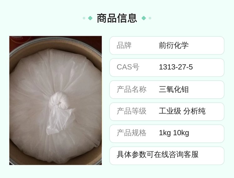 前衍化学三氧化钼 氧化钼 分析纯试剂 淡黄色绿色粉末 工业级1kg10kg