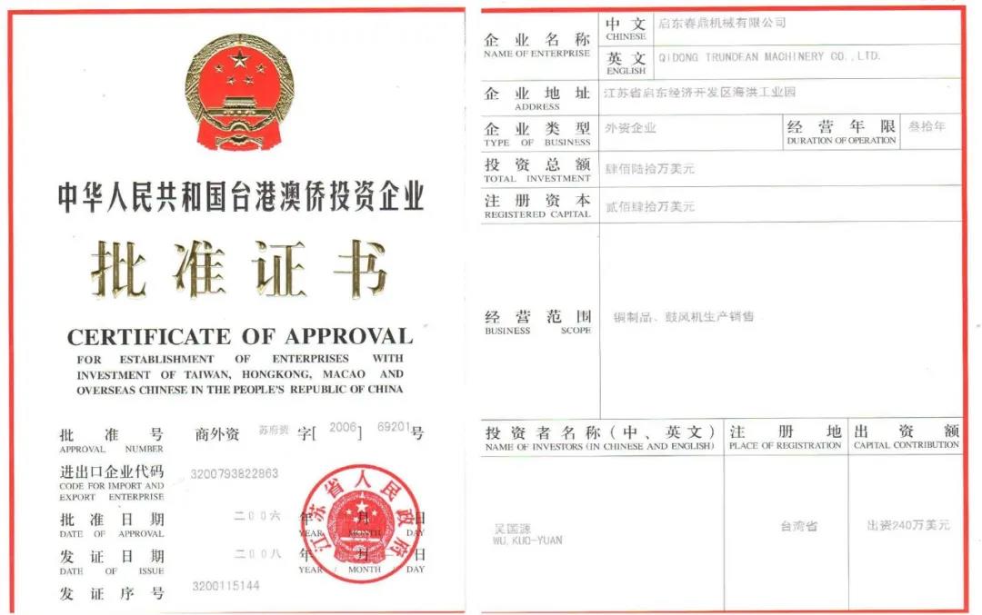 春鼎机械工业股份有限公司(台湾)---鲁氏风机制造商,1982年创立于台湾桃园,春鼎立足于台湾,主要面向大陆、东南亚等市场输出其“春鼎”品牌鲁氏风机的产品与服务(注:鲁氏风机为台湾地区对roots的翻译,大陆翻译则为罗茨风机),“春鼎”品牌鲁氏鼓风机、鲁氏真空泵被广泛应用于包括气力输送、水体曝气在内的各个领域。启东春鼎机械有限公司是一家经国家商务部批准成立的台商独资企业,也是台湾春鼎在大陆市场设立的唯一分支机构,承担着整个大陆市场“春鼎”品牌鲁氏风机产品的提供与服务职能,2019年被正式接纳为中国机械工程协会物流工程分会(管道物料输送专业)团体会员。上世纪90年代进入大陆市场以来,“春鼎”品牌为众多行业与企业提供了其优质产品与服务。