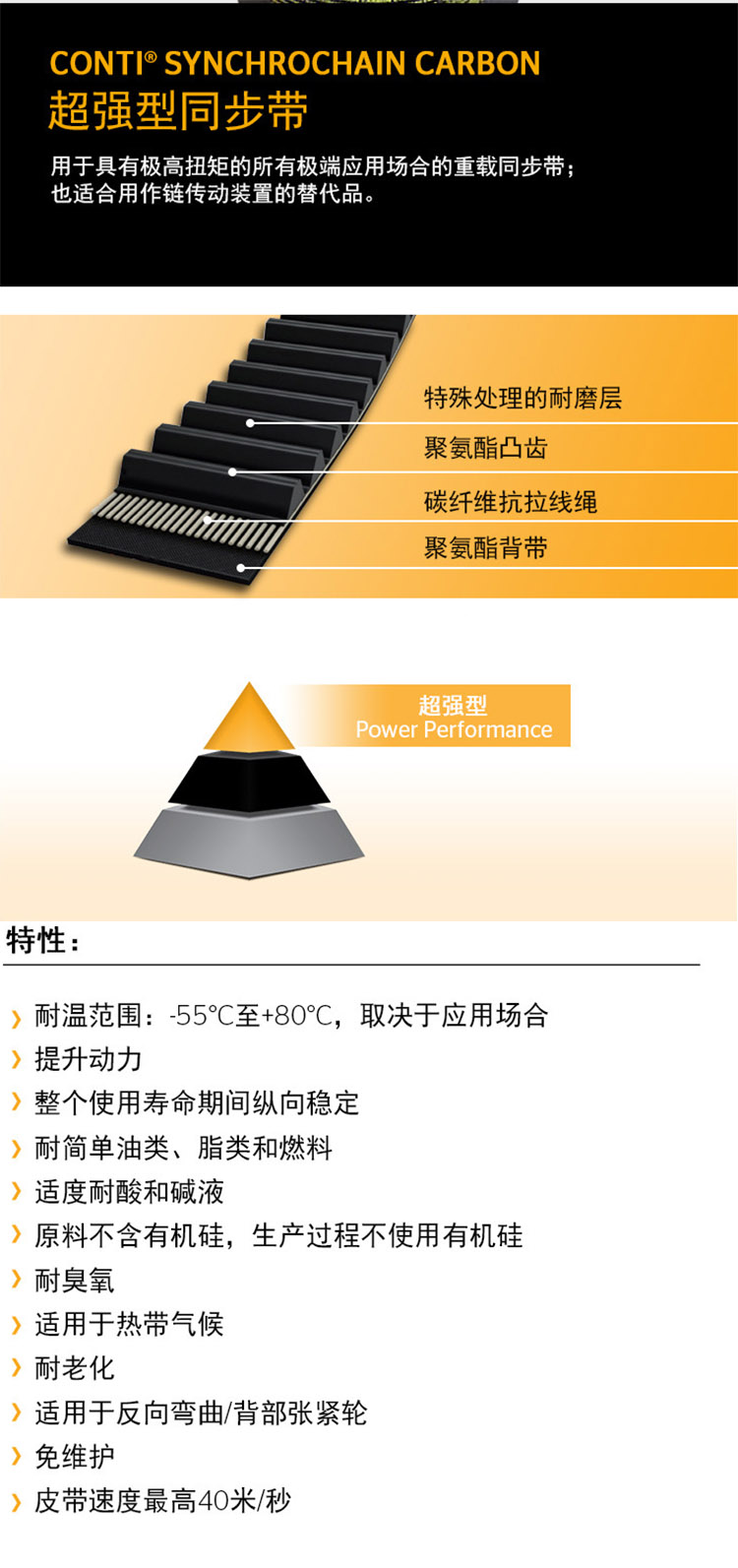 德国马牌 碳纤维同步带 CARBONCTD C800M 工业皮带 高强度 承载力强