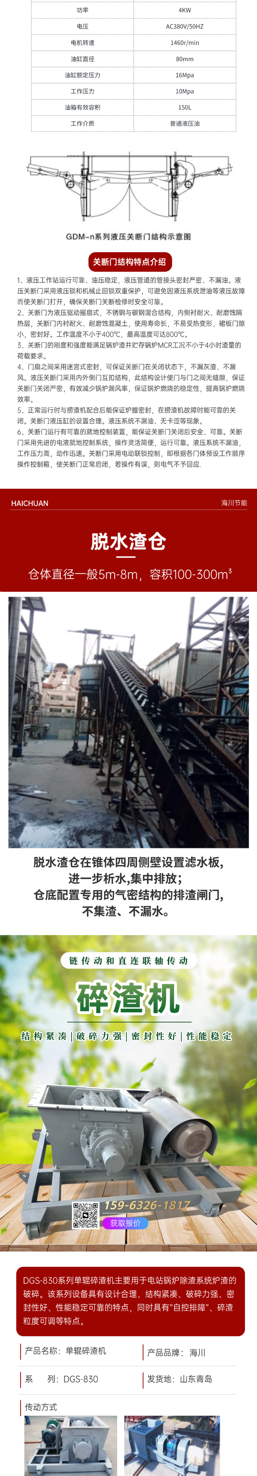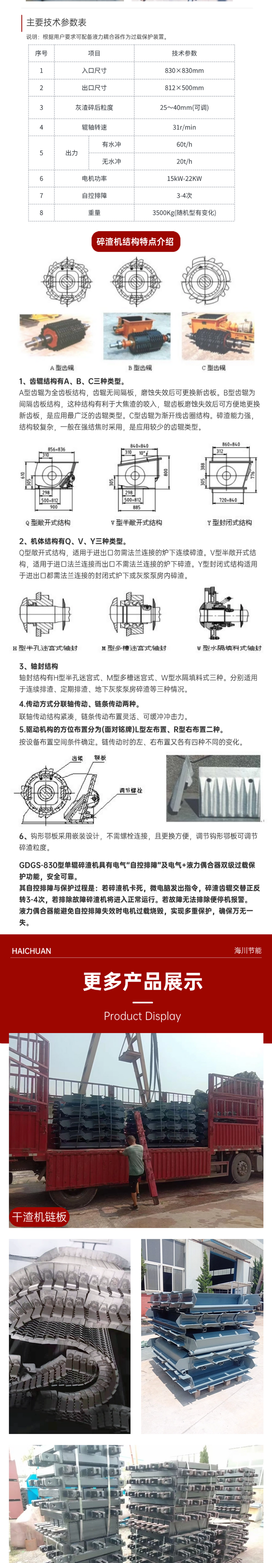 海川 煤粉炉除渣系统 齿辊式破机 直连联轴传动方式 支持定制