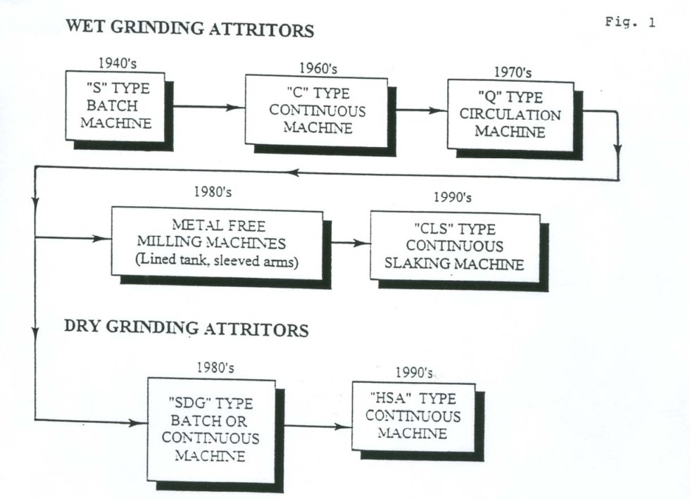 1946 年,Szegvari博士创立了自己的搅拌磨制造公司Union Process Inc.经过近50年(至今已75年)的持续研发,超细搅拌磨已成为最高效、用途最广的研磨和分散设备之一。图一显示了搅拌磨多年来发展的概况。