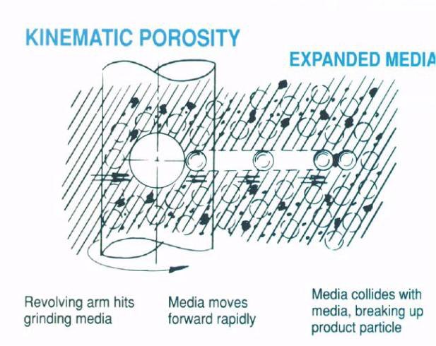 The principle of Attritor dry grind processing is achieved by an expanded moving bed of media.