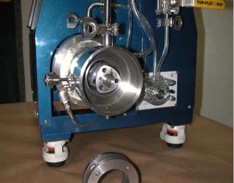 directly into the grinding tank; no premixing or pre-dispersing is needed. Since the top-open grinding tank is stationary, the process can be visually observed and corrections and additional ingredients can be introduced at any time. The maximum feed material size can be up to 10mm, provided the material is friable; otherwise, any 10 mesh down material is feasible to be processed in this machine.All production “S” machines are equipped with