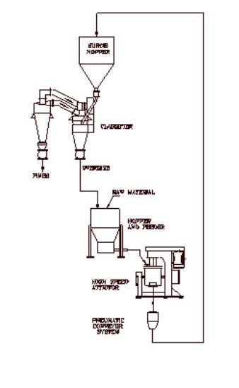 An air classifier or screen can be incorporated with SDG or HSA Attritors to form a closed