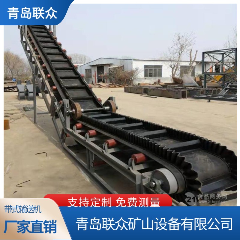 联众碳钢材质皮带机 大倾角输送机 工业连续输送设备 橡胶挡边大运载