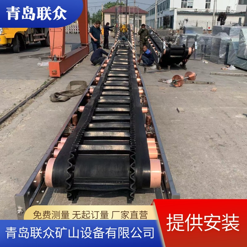 不锈钢皮带输送机 带挡板大角度爬坡皮带机 大倾角运输机 联众定制